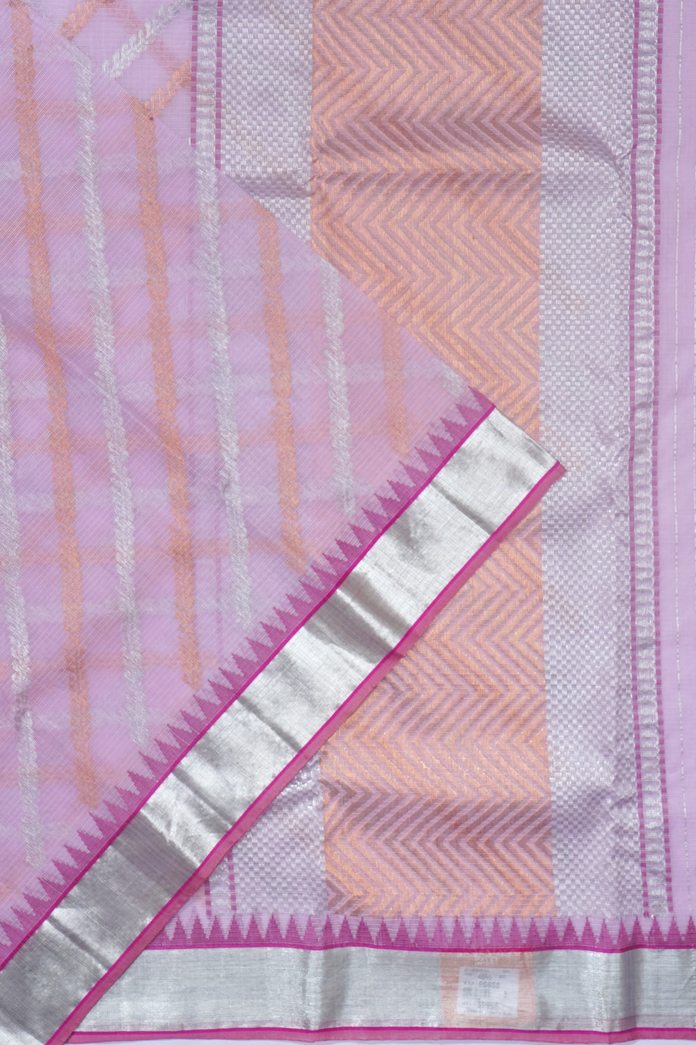 Zari Kota Cotton Diagonal Lines Baby Pink Saree, Body.