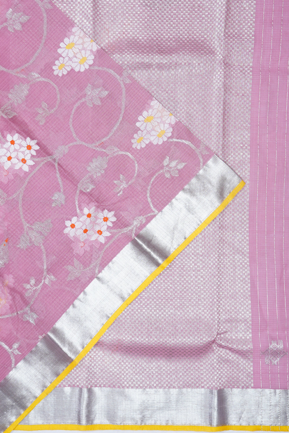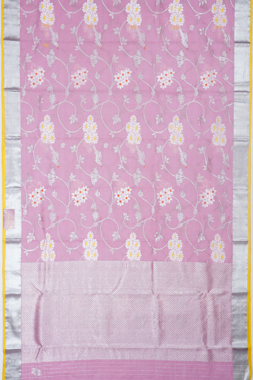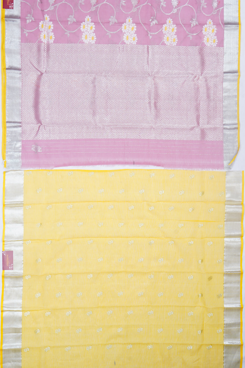 Embrace timeless elegance with the Zari Kota Cotton Jaal Pink Saree, a masterpiece from Kankatala's handpicked collection This exquisite saree features a delicate Jaal body pattern, complemented by a contrast zari small border, perfect for weddings and special occasions As a brand dedicated to quality and India's weaving heritage since 1943, Kankatala ensures each saree, like this beautiful pink and yellow creation, reflects meticulous craftsmanship and tradition