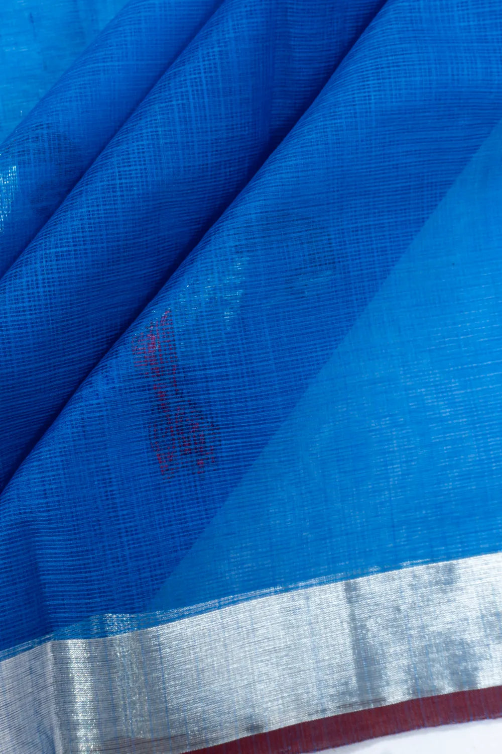 Defined by a self silver zari kaddi small border with a rich maroon edge, adding a stately contrast.