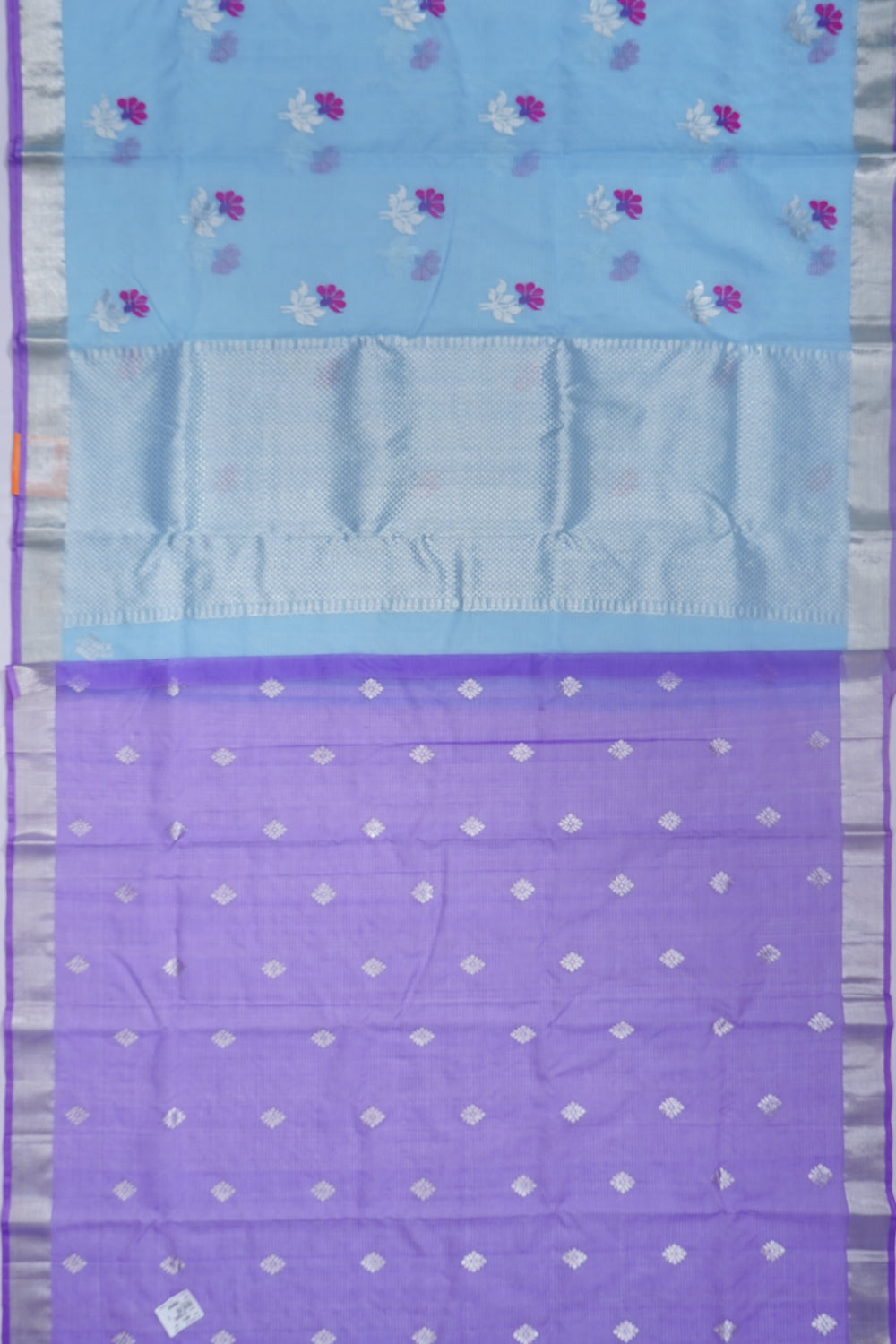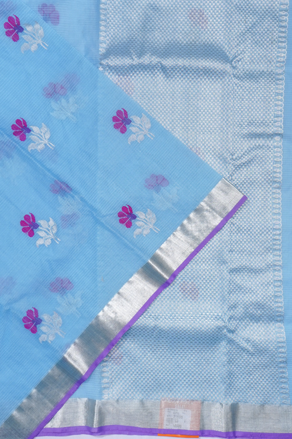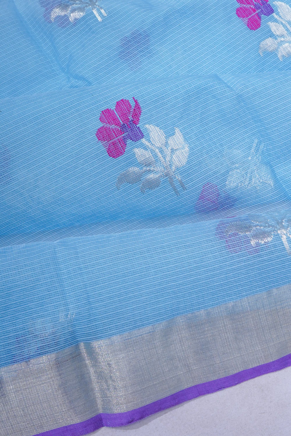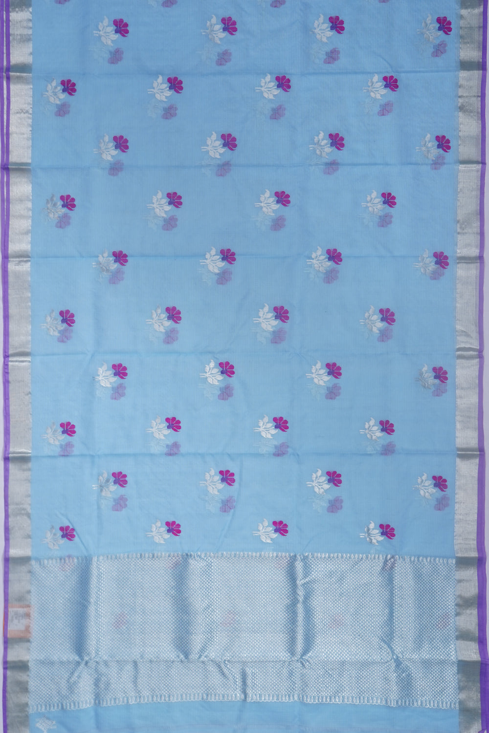 Zari Kota Cotton Jamdani Butta Pastel Blue Saree, Body.