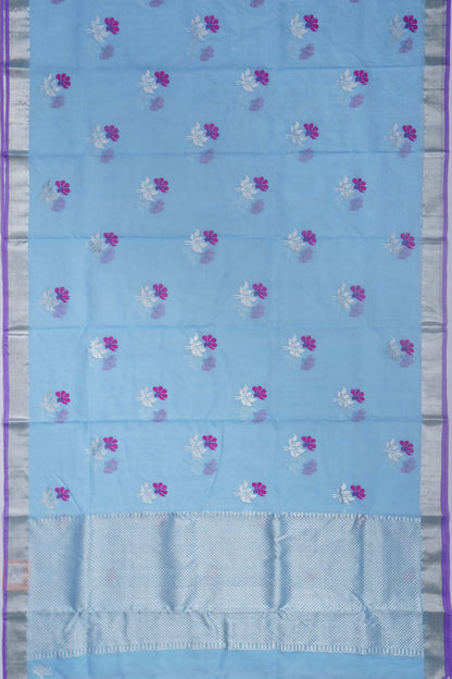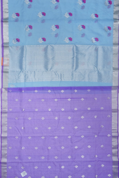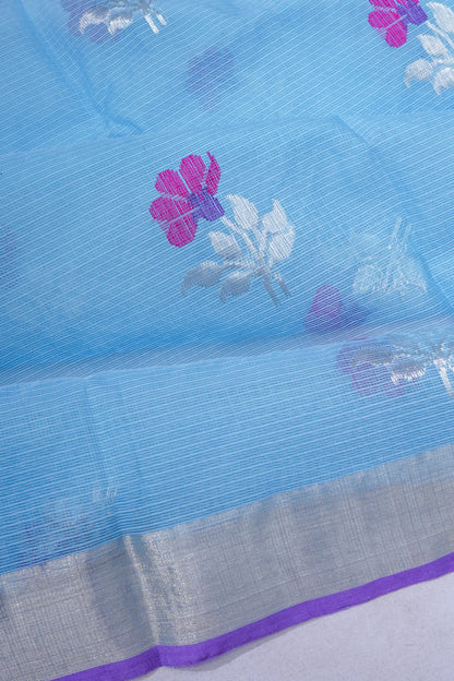 Zari Kota Cotton Jamdani Butta Pastel Blue Saree