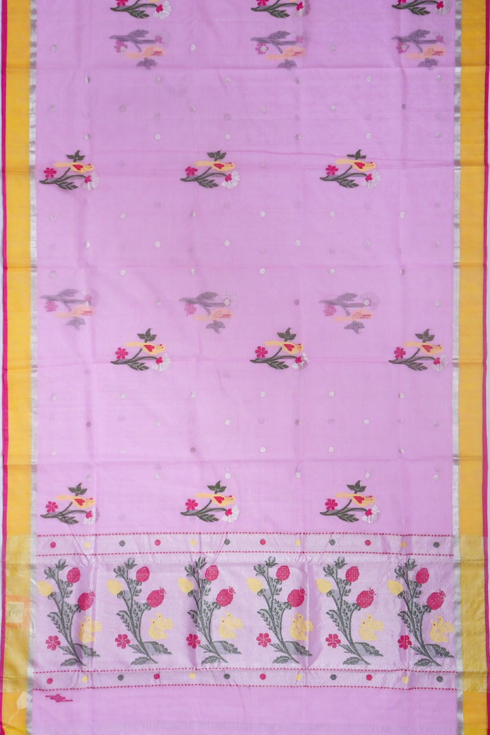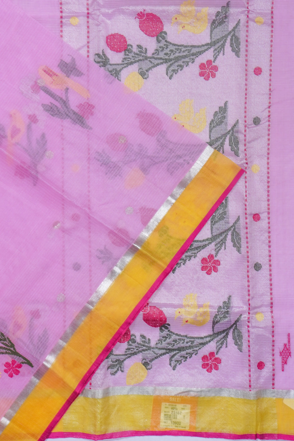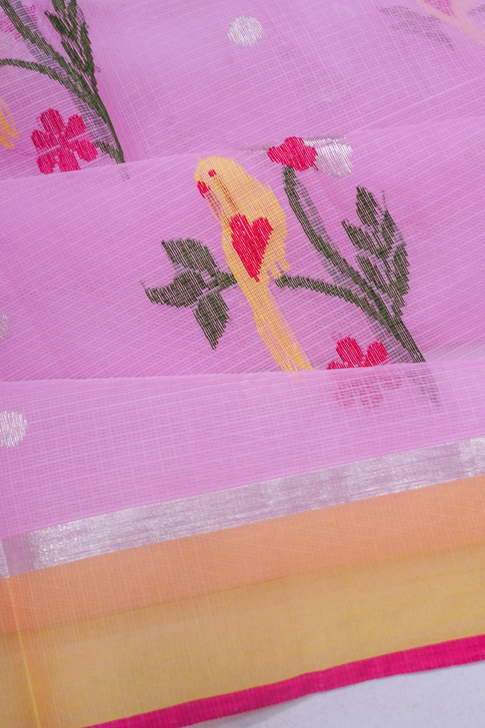 Zari Kota Cotton Jamdani Butta Pink Saree, Body.