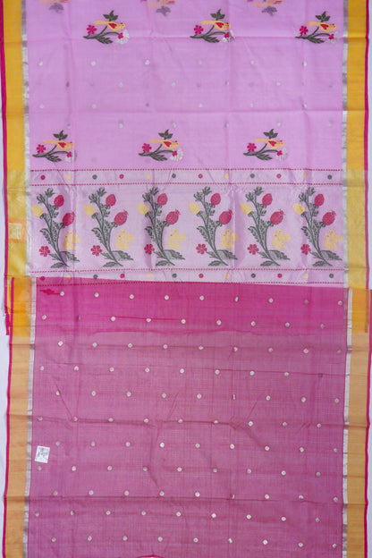 Zari Kota Cotton Jamdani Butta Pink Saree