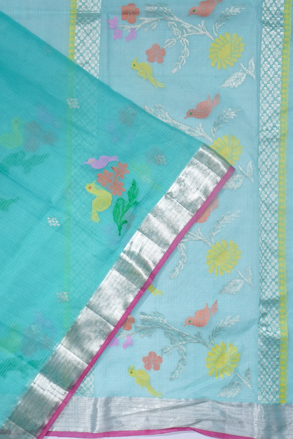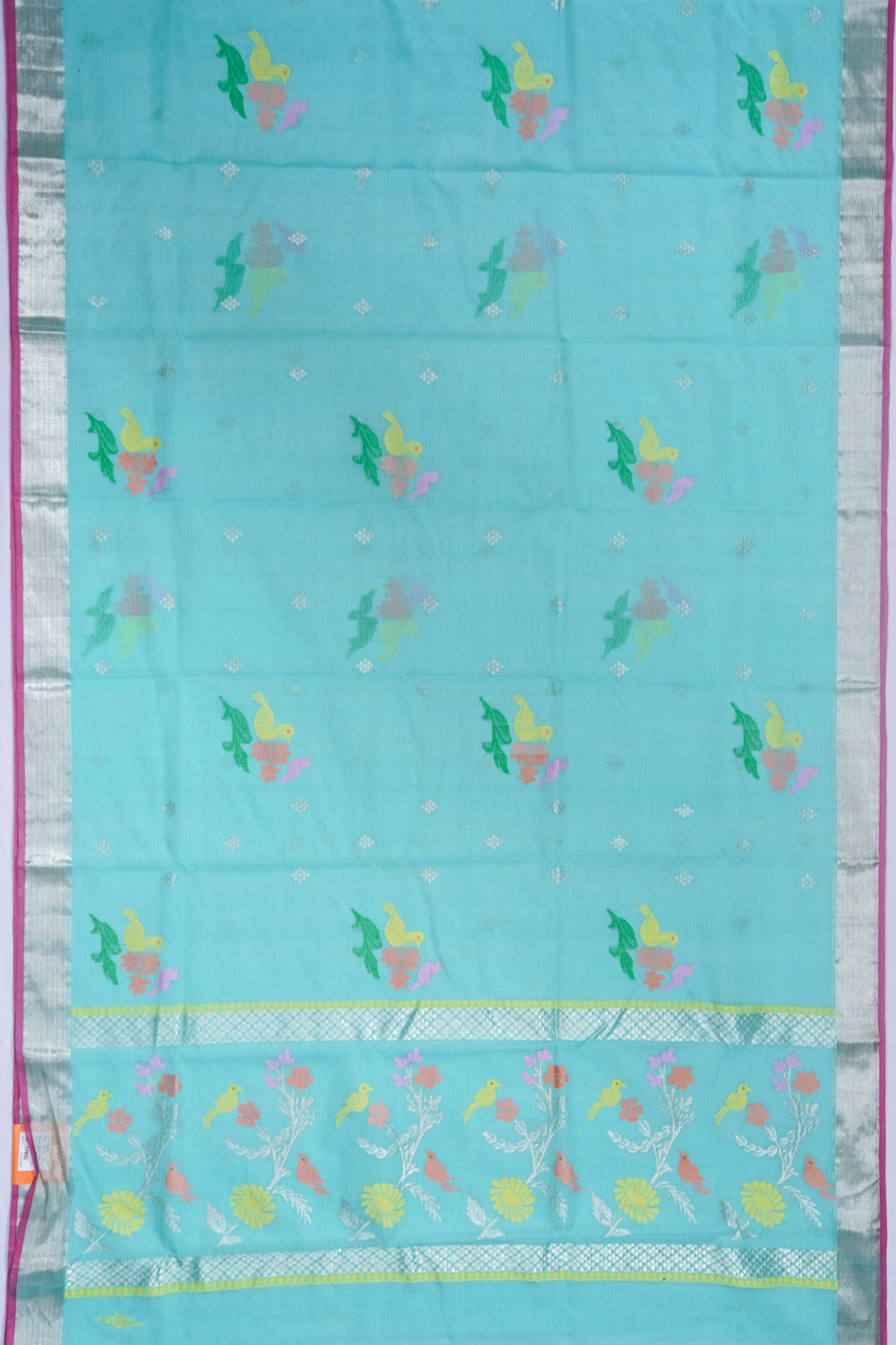 Zari Kota Cotton Jamdani Butta Sea Green Saree