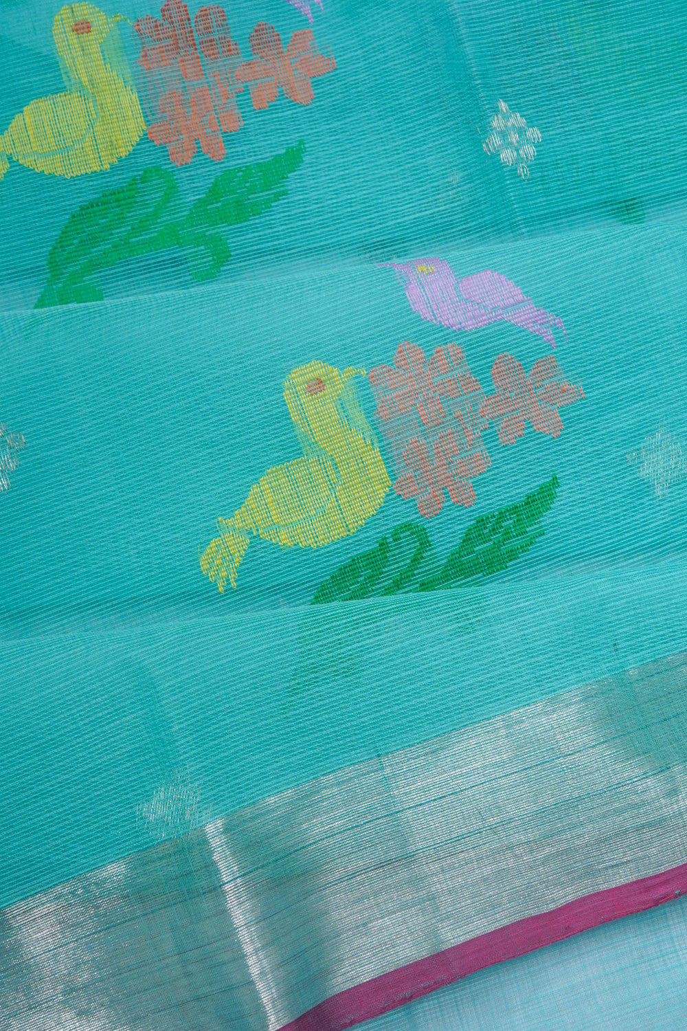 Zari Kota Cotton Jamdani Butta Sea Green Saree, Body.