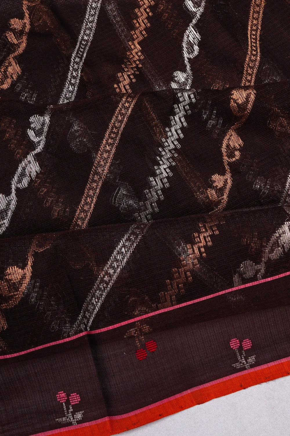 Zari Kota Cotton Jamdani Jaal Brown Saree